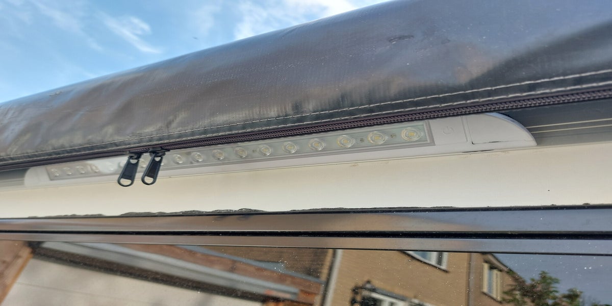 Vandaag weer lekker opgeschoten. Dakrailing geplaatst, luifel gemonteerd met daaronder een buitenlamp, en de binnenzijde van stoffering voorzien.